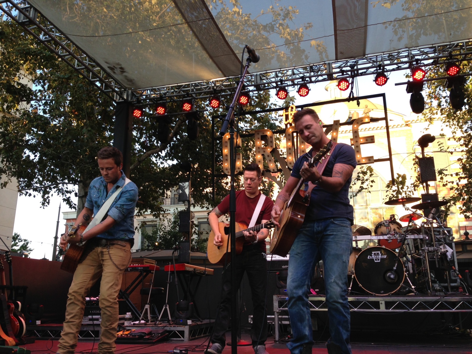 Around 6:30, we checked in at the table in front of the stage; got our wristbands and got FRONT ROW to see Love'N'Theft and Sara Evans...and did I mention it was FREE?! Cause it was. Does it get any better than that? An announcer came out and talked to the crowd a little to get everyone warmed up and music was playing over the loudspeakers. We got settled in, and pretty soon the show started up. Love'N'Theft took the stage with a short acoustic set, which seemed to really get the crowd singing along and having a great time. They sang their radio hits and a couple new songs that I'm really digging! The weather was perfect and it was a really great night for good music and good company. I didn't have a care in the world.